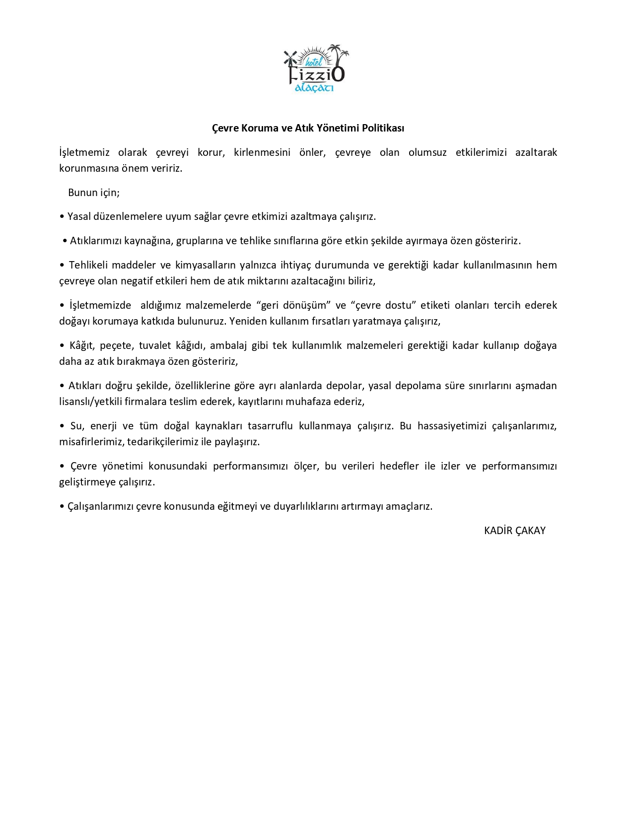 ÇEVRE KORUMA VE ATIK YÖNETİMİ POLİTİKAMIZ