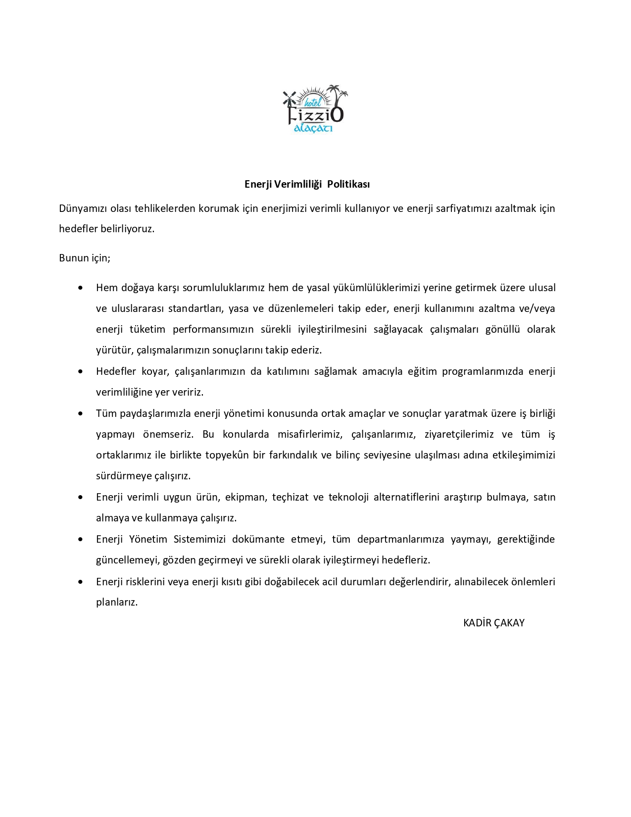 ENERJİ VERİMLİLİĞİ POLİTİKAMIZ