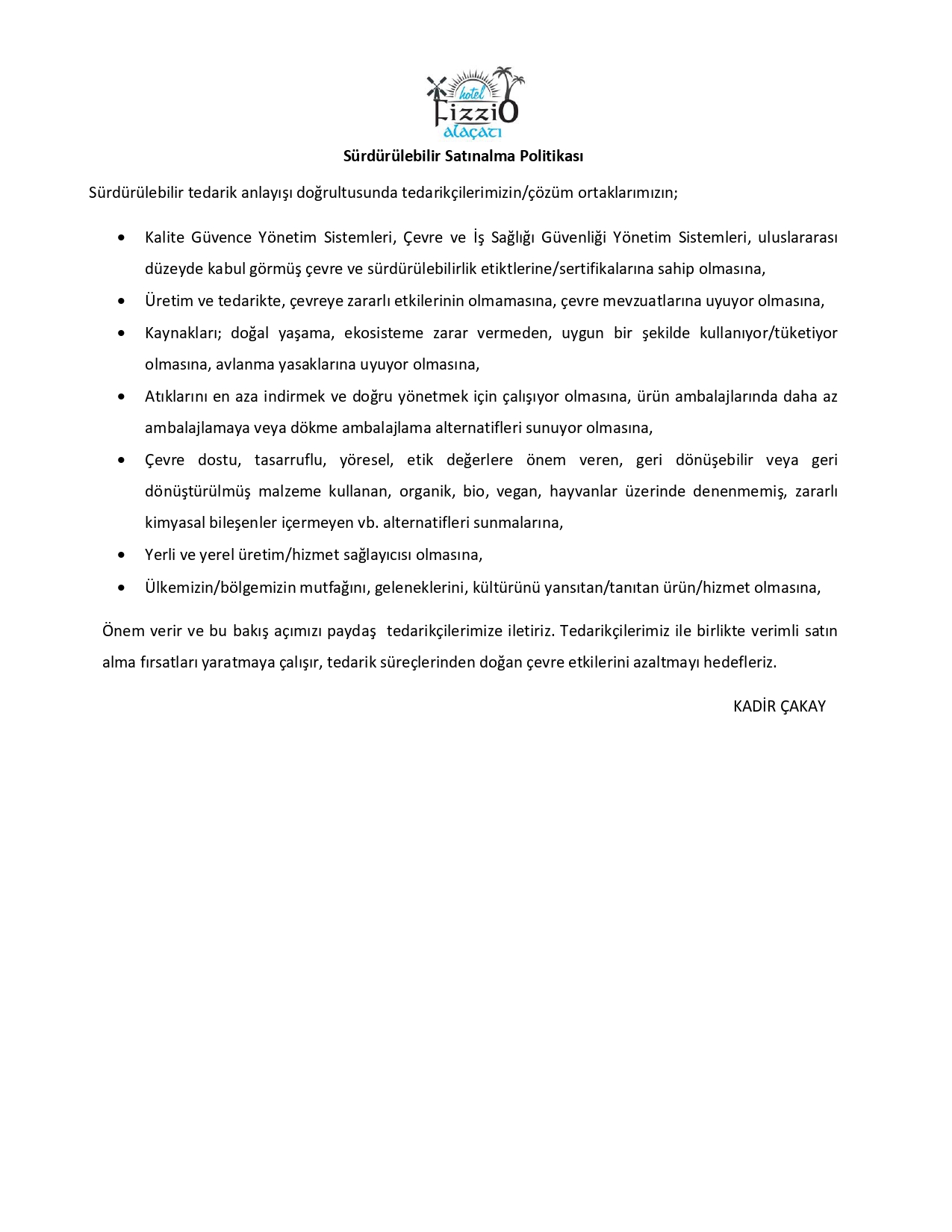 SÜRDÜRÜLEBİLİR SATINALMA POLİTİKAMIZ